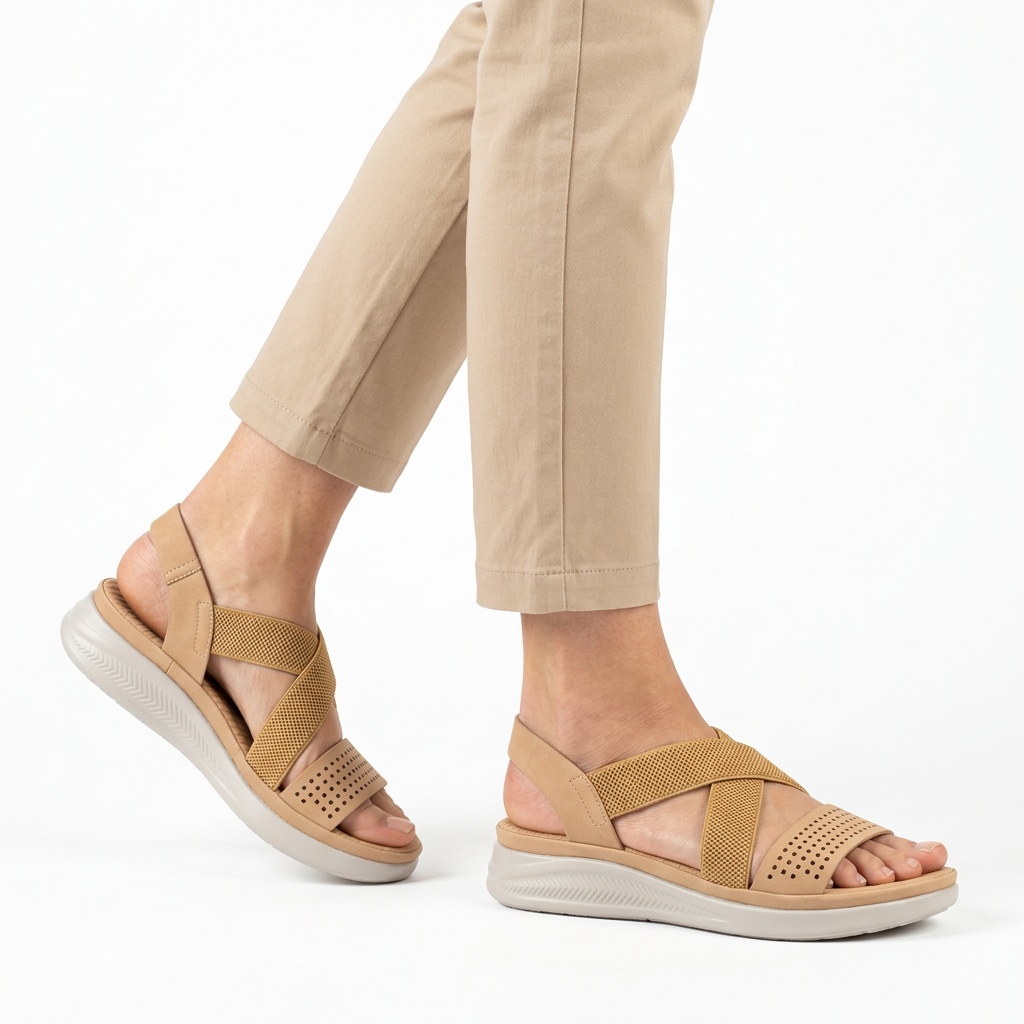 Ανακαλύψτε τα γυναικεία ανατομικά παπούτσια με μοναδικό cross-strap design και perforated front strap. Διαθέτουν cushioned insole για άνεση και white textured sole για σταθερότητα.