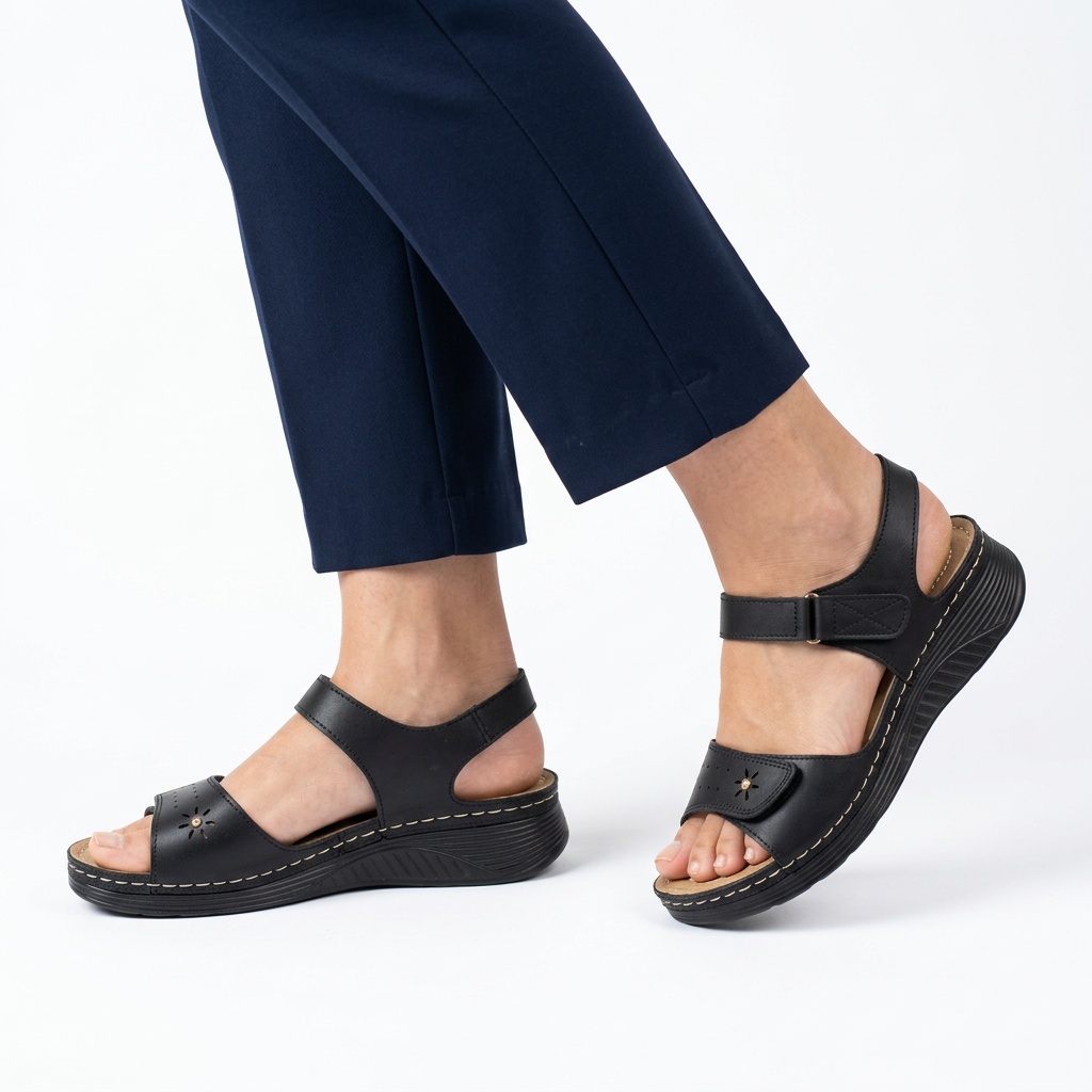 Η διάτρητη εσωτερική σόλα προσφέρει εξαιρετική αναπνοή και άνεση, ενώ οι διακοσμητικές ραφές και οι floral cutout λεπτομέρειες προσθέτουν μια κομψή πινελιά. Η σόλα wedge παρέχει επιπλέον στήριξη και στυλ.