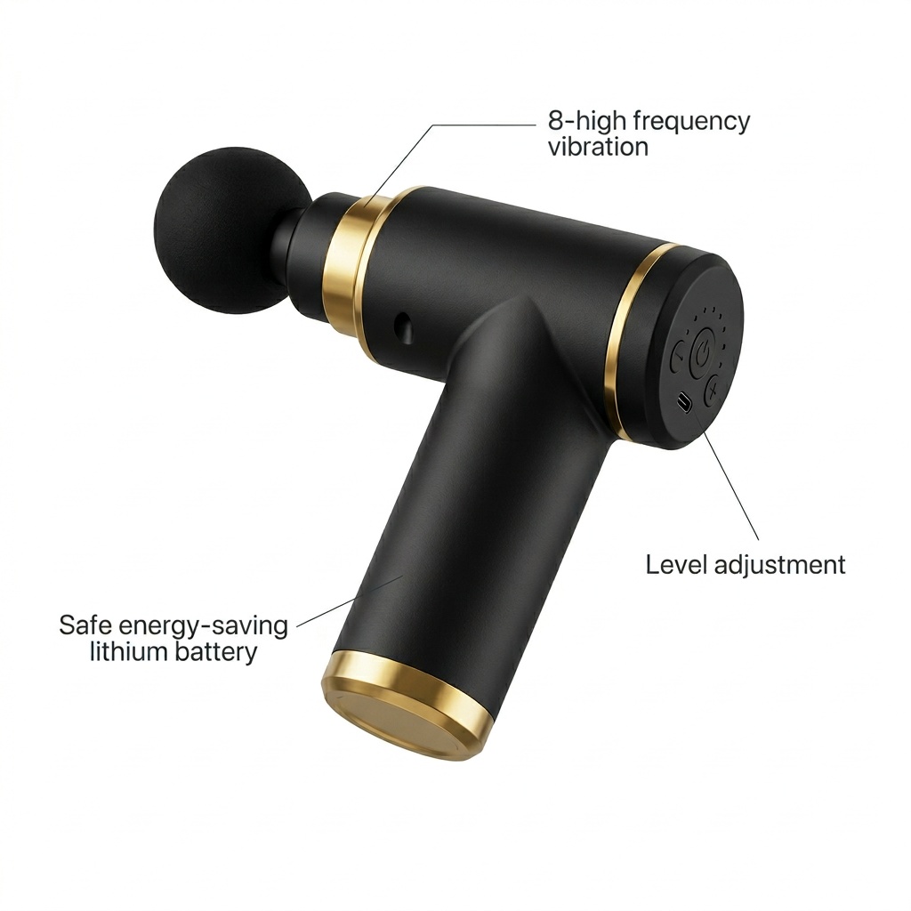 Με ρυθμιζόμενη ένταση και 8 υψηλής συχνότητας δονήσεις, το μηχάνημα αυτό είναι ιδανικό για μασάζ μετά την άσκηση, ανακουφίζοντας από μυϊκή δυσκαμψία και πόνο. Η USB επαναφορτιζόμενη λειτουργία του εξασφαλίζει μακροχρόνια διάρκεια ζωής της μπαταρίας.